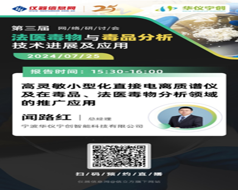 會(huì)議邀請(qǐng) | 華儀寧創(chuàng)邀您參加第三屆法醫(yī)毒物與毒品分析技術(shù)進(jìn)展及應(yīng)用研討會(huì) 2024-07-23 為了促進(jìn)法醫(yī)毒物與毒品分析等領(lǐng)域的技術(shù)交流與合作,儀器信息網(wǎng)將于7月25日組織召開“法醫(yī)毒物與毒品分析技術(shù)進(jìn)展”主題網(wǎng)絡(luò)研討會(huì)。本次會(huì)議將邀請(qǐng)國(guó)內(nèi)外知名專家就法醫(yī)毒物和毒品分析技術(shù)的最新進(jìn)展、挑戰(zhàn)和未來(lái)發(fā)展趨勢(shì)進(jìn)行深入研討。作為公安禁毒領(lǐng)域科技創(chuàng)新優(yōu)秀企業(yè)代表,寧波華儀寧創(chuàng)智能科技有限公司總經(jīng)理聞路紅教授受邀將在本次會(huì)議中作《高靈敏小型化直接電離質(zhì)譜儀及在毒品、法醫(yī)毒物分析領(lǐng)域的推廣應(yīng)用》主題報(bào)告,與大家分享華儀寧創(chuàng)自主研發(fā)小型化直接電離質(zhì)譜儀在毒品檢測(cè)、法醫(yī)毒物分析等領(lǐng)域的實(shí)戰(zhàn)優(yōu)勢(shì)和應(yīng)用案例。歡迎… 查看詳情