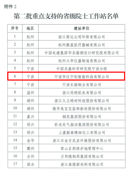 近日,浙江省院士專家工作站建設協(xié)調(diào)小組辦公室公布了首批重點支持的省級院士工作站名單。在前期自主申報、形式審查、專家評審等基礎上,經(jīng)省院士專家工作站建設協(xié)調(diào)小組辦公室最終會議討論,寧波華儀寧創(chuàng)智能科技有限公司成功入選,順利獲批浙江省重點院士工作站。