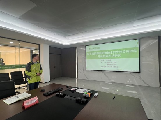 報告會上,甘啟超博士作《基于直接電離質(zhì)譜技術(shù)的生物合成藥物分析方法研發(fā)》的博士后開題報告,并對其研究課題的進展情況進行匯報。報告結(jié)束后,專家組和甘啟超博士圍繞課題的研究方法和研究過程展開細致討論。