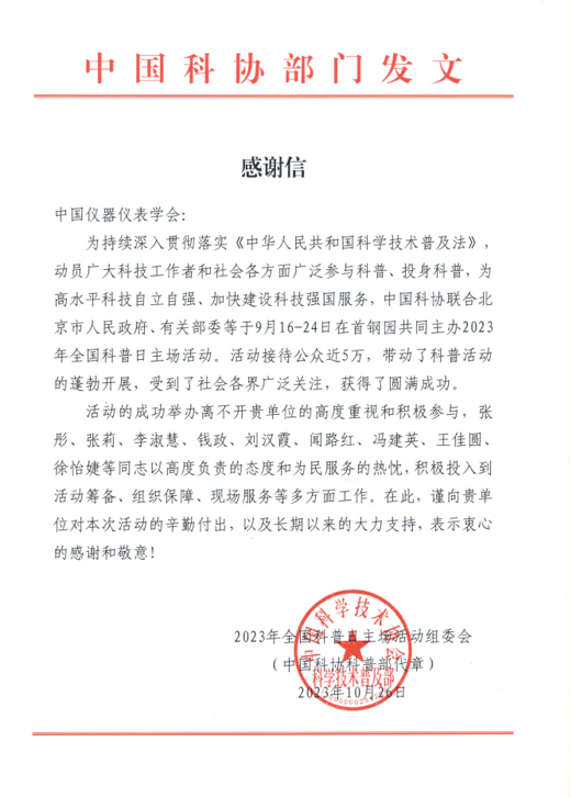 此次科普日活動觀眾量近5萬人次,華儀寧創(chuàng)接待觀眾近2萬,現場反響異常熱烈。許多學生和家長結束參觀后,在現場媒體的采訪中都會介紹到,在參觀途中令自己印象最深刻的是禁毒黑科技展區(qū)。活動結束后,華儀寧創(chuàng)收到了來自中國科協的感謝信。