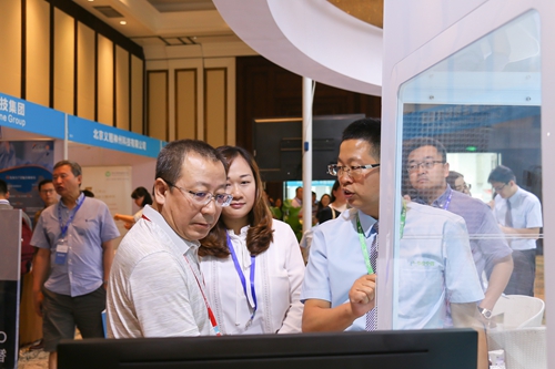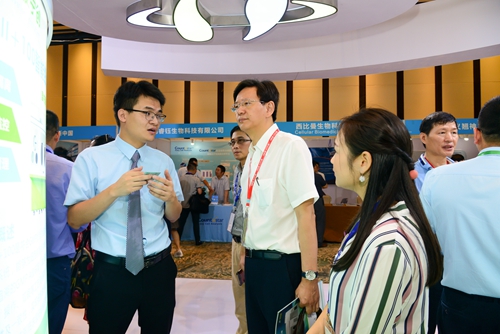 蘇州大學(xué)唐仲英血液學(xué)研究中心特聘教授楊林、軍事醫(yī)學(xué)科學(xué)院王韞芳研究員參觀展臺(tái)
