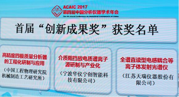 中國(guó)儀器儀表學(xué)會(huì)分析儀器分會(huì)于2017年首度設(shè)立“分析儀器創(chuàng)新獎(jiǎng)”,設(shè)立宗旨是發(fā)現(xiàn)、鼓勵(lì)、宣傳分析儀器界在新原理、新方法、新技術(shù)及新應(yīng)用方面的創(chuàng)新成果,加速推動(dòng)我國(guó)分析儀器技術(shù)的發(fā)展,要求技術(shù)具有原創(chuàng)性,成果具有獨(dú)創(chuàng)性,技術(shù)水平國(guó)際先進(jìn),國(guó)內(nèi)領(lǐng)先;經(jīng)實(shí)踐,可重復(fù)、可推廣;具有明顯的技術(shù)進(jìn)步作用,技術(shù)經(jīng)濟(jì)綜合指標(biāo)優(yōu)越的項(xiàng)目。由于是首次設(shè)獎(jiǎng)評(píng)選,評(píng)選要求高,申報(bào)成果眾多,競(jìng)爭(zhēng)相當(dāng)激烈,最終獲獎(jiǎng)實(shí)屬不易。首屆“分析儀器創(chuàng)新成果獎(jiǎng)”包括:介質(zhì)阻擋放電質(zhì)譜離子源研制與產(chǎn)業(yè)化(寧波華儀寧創(chuàng)智能科技有限公司)、高精度四級(jí)桿質(zhì)量分析器的工程化研制與應(yīng)用(中國(guó)工程物理研究院機(jī)械制造工藝研究所)、全譜直讀型電感耦合等離子體發(fā)射光譜儀(江蘇天瑞儀器股份有限公司)。