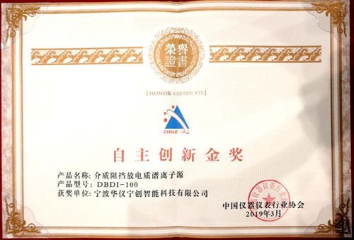 2019年3月27日-29日,由中國儀器儀表行業(yè)協(xié)會主辦的第十七屆中國國際科學(xué)儀器及實驗室裝備展覽會(CISILE 2019)在北京國家會議中心舉行。在同期舉行的“CISILE 2019年度自主創(chuàng)新獎頒獎儀式”上,華儀寧創(chuàng)介質(zhì)阻擋放電質(zhì)譜離子源產(chǎn)品榮獲中國儀器儀表行業(yè)協(xié)會自主創(chuàng)新金獎。
