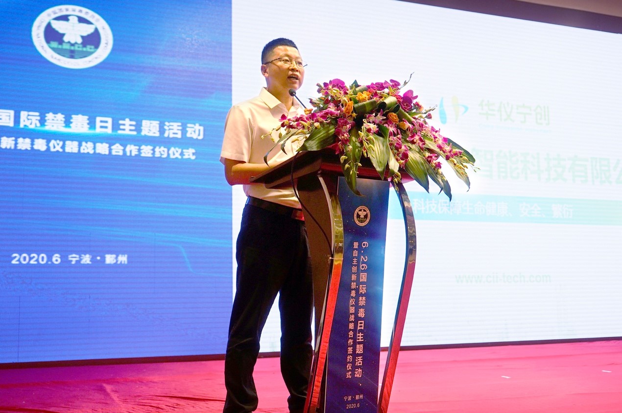 寧波華儀寧創(chuàng)智能科技有限公司總經(jīng)理聞路紅在致辭中首先表達(dá)了對奮戰(zhàn)在禁毒一線公安民警的崇高敬意,同時也對鄞州公安分局支持將國家公共安全重大專項成果應(yīng)用示范于禁毒實戰(zhàn)工作表示誠摯感謝。他介紹說,華儀寧創(chuàng)是鄞州區(qū)“一企一策”重點引進(jìn)和支持發(fā)展的科技創(chuàng)新企業(yè),2018年承擔(dān)了國家公共安全重點研發(fā)計劃“毒品違法犯罪監(jiān)測預(yù)警關(guān)鍵技術(shù)研究和應(yīng)用示范”項目,成功研制了專用于吸毒人員篩查和毒品查緝的便攜式質(zhì)譜儀等成果,可用于對吸毒人員的毛發(fā)、唾液、尿液等生物樣本的快速、準(zhǔn)確篩查,也可用于傳統(tǒng)毒品和新精神活性物質(zhì)(含芬太尼類物質(zhì))的現(xiàn)場緝查確認(rèn)。華儀寧創(chuàng)希望通過此次與鄞州公安分局的應(yīng)用示范合作,一起將鄞州區(qū)打造成為全市、全省乃至全國在科技禁毒、警民融合發(fā)展領(lǐng)域的成功樣板案例!
