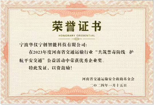 在2023年度河南省交通運(yùn)輸行業(yè)“共筑禁毒防線 護(hù)航平安交通”公益活動中,華儀寧創(chuàng)因為相關(guān)工作榮獲“公益事業(yè)優(yōu)秀企業(yè)獎”。