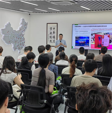 活動開始后,華儀寧創(chuàng)應(yīng)用研究部負責(zé)人熊偉博士為大家詳細介紹了公司的成立背景、發(fā)展歷程、核心業(yè)務(wù)產(chǎn)品。應(yīng)用技術(shù)服務(wù)中心總監(jiān)章文天就材化專業(yè)就業(yè)方向、發(fā)展通道等問題為大家做專題分享。