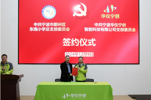 為深入貫徹黨的二十大精神,推動(dòng)雙方在科技教育、人才培養(yǎng)、社會服務(wù)等方面的深度合作。2024年12月9日,中共寧波華儀寧創(chuàng)智能科技有限公司黨支部(以下簡稱華儀寧創(chuàng)黨支部)與中共寧波市鄞州區(qū)東南小學(xué)黨支部(以下簡稱東南小學(xué)黨支部)在華儀寧創(chuàng)報(bào)告廳舉行了黨建聯(lián)建簽約儀式。東南小學(xué)黨支部黨總支書記謝增煥、黨支部書記鮑期峰、黨支部書記繆潔及黨員代表、華儀寧創(chuàng)黨支部書記聞路紅,副書記范國正、委員劉云、馮建英及黨員代表參會。