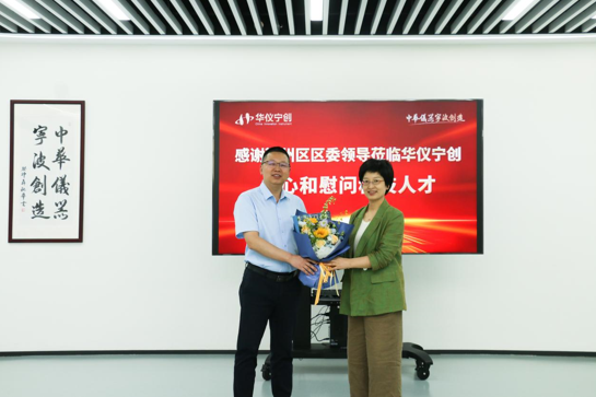 在“5·30”全國科技工作者日來臨之際,5月26日下午,鄞州區(qū)委副書記、社會工作部部長、政法委書記余寧率區(qū)委辦、區(qū)科技局、區(qū)科協(xié)等部門負責人一行,赴寧波華儀寧創(chuàng)智能科技有限公司(以下簡稱“華儀寧創(chuàng)”)開展走訪慰問活動。華儀寧創(chuàng)總經(jīng)理聞路紅教授代表公司全體科技工作者接受了區(qū)委領導的關心和慰問。