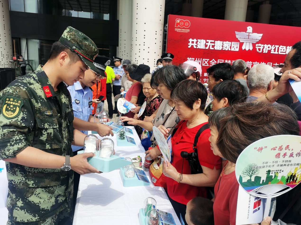 6月24日上午,在鄞州區(qū)明州里商場門前,一場題為“共建無毒家園,守護紅色根脈”的禁毒科普公益行活動熱烈展開。本次活動由鄞州區(qū)禁毒委員會辦公室、鄞州區(qū)科學技術協(xié)會、鐘公廟街道、寧波海警局鄞州工作站、寧波華儀寧創(chuàng)智能科技有限公司等單位聯(lián)合舉辦,包括仿真毒品展示、禁毒常識宣講、海上緝毒分享、禁毒知識有獎問答、禁毒檢測儀器體驗等多個豐富多彩的內容。鄞州區(qū)禁毒辦常務副主任、區(qū)公安分局禁毒大隊大隊長葉仁達、鄞州區(qū)公安分局禁毒大隊教導員林蕓、寧波海警局鄞州工作站教導員朱文陸、鐘公廟街道社會治安綜合治理辦公室主任、街道禁毒辦主任沈衛(wèi)民、寧波華儀寧創(chuàng)智能科技有限公司總經(jīng)理聞路紅等領導以及警民代表300余人參加了現(xiàn)場活動。